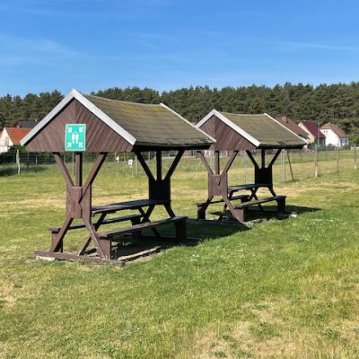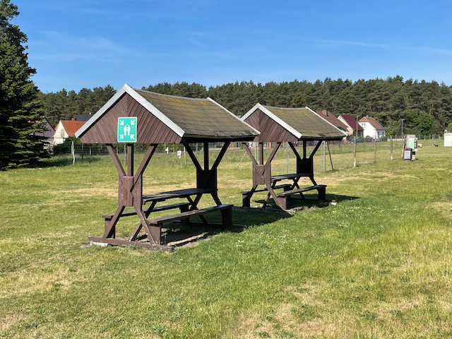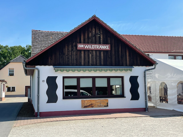 Vor Ort sind zwei Rasthütten für ein mitgebrachtes Picknick aufgestellt. Aber auch zu den Öffnungszeiten der Gaststätte „Wildtränke“ kann dort getrunken und gespeist werden.