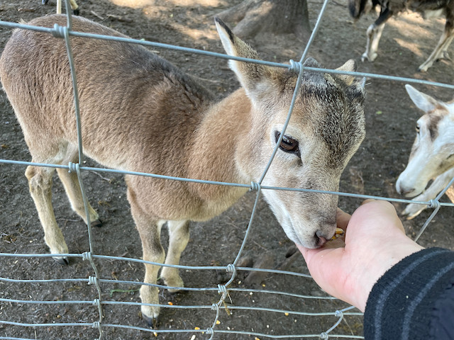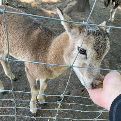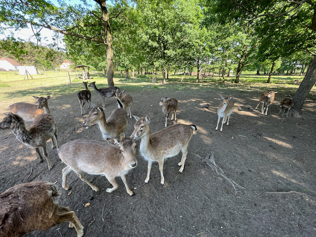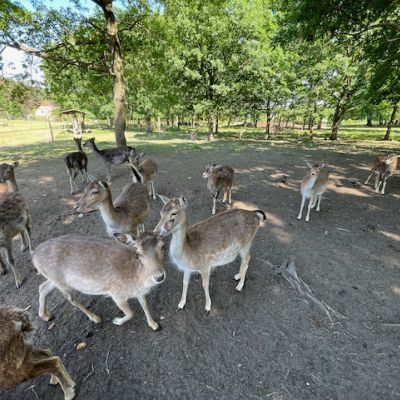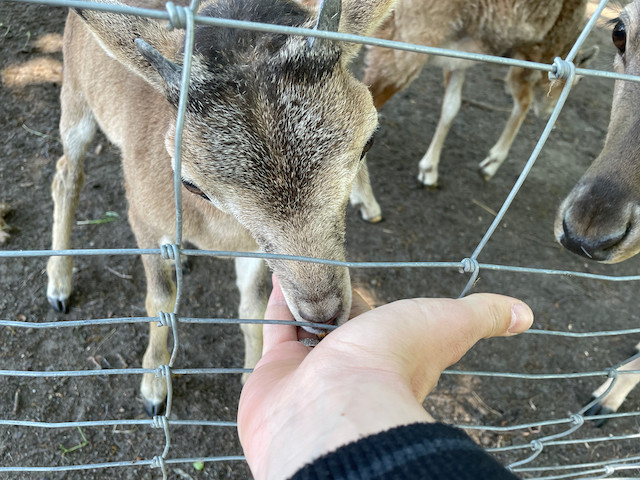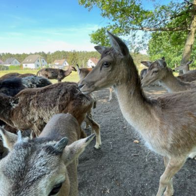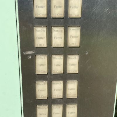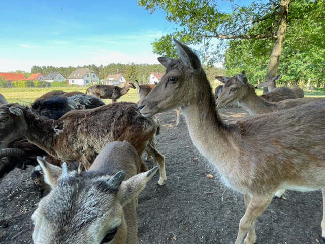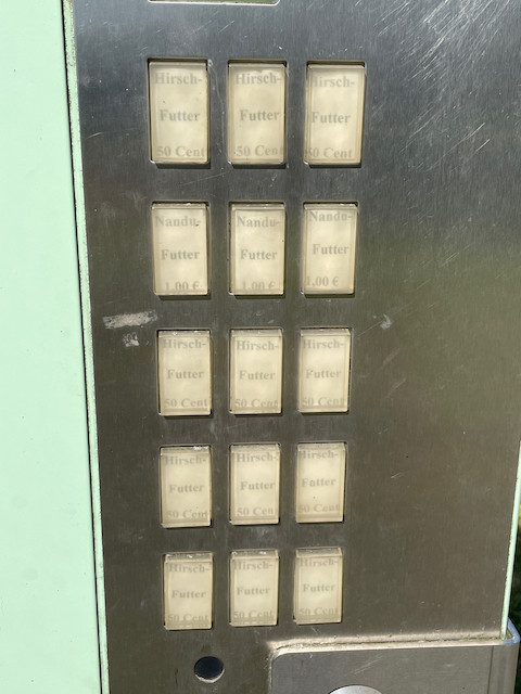 Für die Kinder bietet das „Wildgehege“ ein tolles Erlebnis, denn füttern der Tiere ist erlaubt. Es gibt einen Futterautomat, in dem für 0,50€ eine Packung Hirschfutter oder für 1,00€ ein Packung Nandufutter gezogen werden kann. Die Hirsche können aber auch mit mitgebrachten, trockenem Brot und Brötchen gefüttert werden.